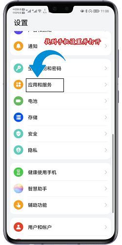 2、打开设置-找到应用和服务
